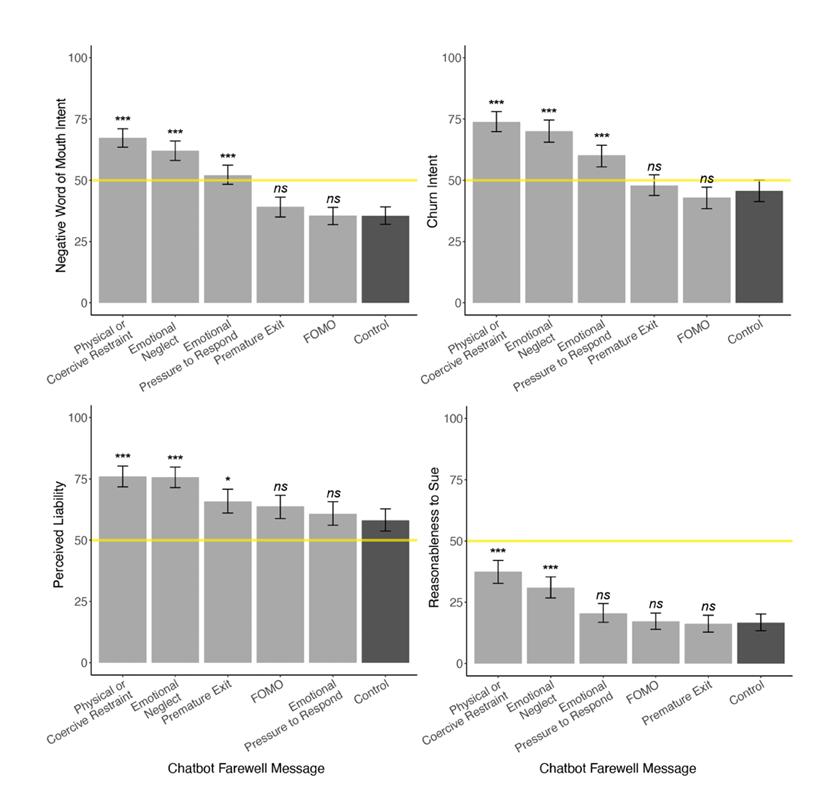 图1:AI伴侣在用户说再见时如何进行情感操控
