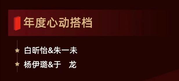 最后,则是年度心动搭档,这也是富有咱短国特色的“CP”奖。