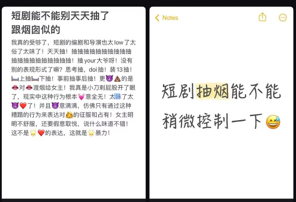 其一,是已经在网上被讨论过许多次的,短剧演员,特别是男演员一个个烟不离手的问题。纵然有剧中人设需要的原因,但很多人在剧外也早就养成吞云吐雾的习惯。过去在小圈子里,这算不上什么问题,可是饭圈壮大,要从短国迈向更大的舞台,“烟”就是个可大可小的问题。