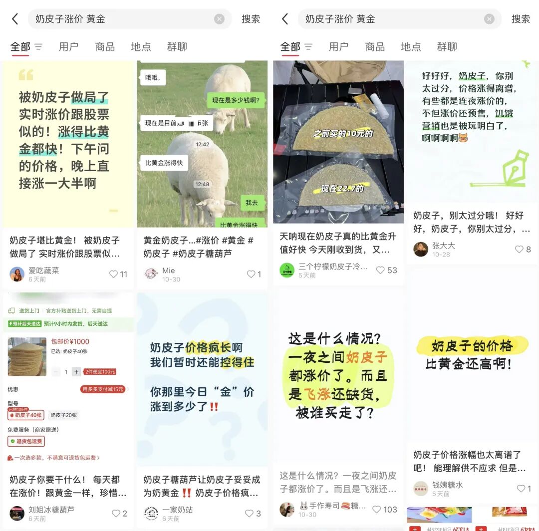 这一爆品还直接导致了奶皮子供不应求,一边是奶皮子糖葫芦商家发帖问:“到底发生什么事儿了?奶皮子一夜之间涨价,涨得比黄金还快!”一边是奶皮子供应商发帖问:“到底发生什么事儿了?一个礼拜火的一塌糊涂,现在一天卖过去一个月的,完全供不上货了!”