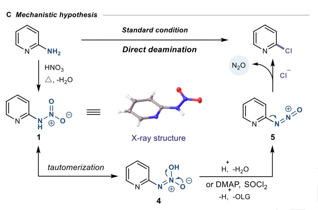 N-硝基胺介导的直接脱氨官能化的反应机理