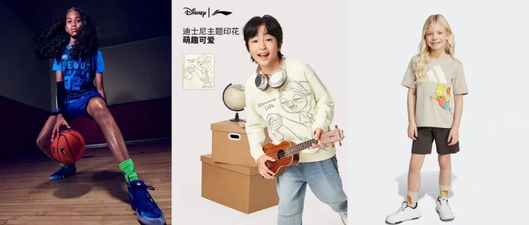 高人气动漫是在儿童群体中人气最高的IP类别之一,能在短期内刺激购买。光是近几个月,市场上就扎堆涌现了匡威 X 猫和老鼠、阿迪达斯 X 辛普森一家、安踏 X 火影忍者、耐克 X 乐高、李宁 X 迪士尼等典型案例。