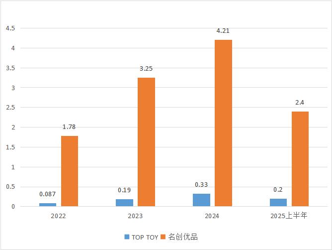 图:2022-2025年上半年名创优品与TOP TOY授权费用对比(单位:亿元);资料来源:公司财报,36氪