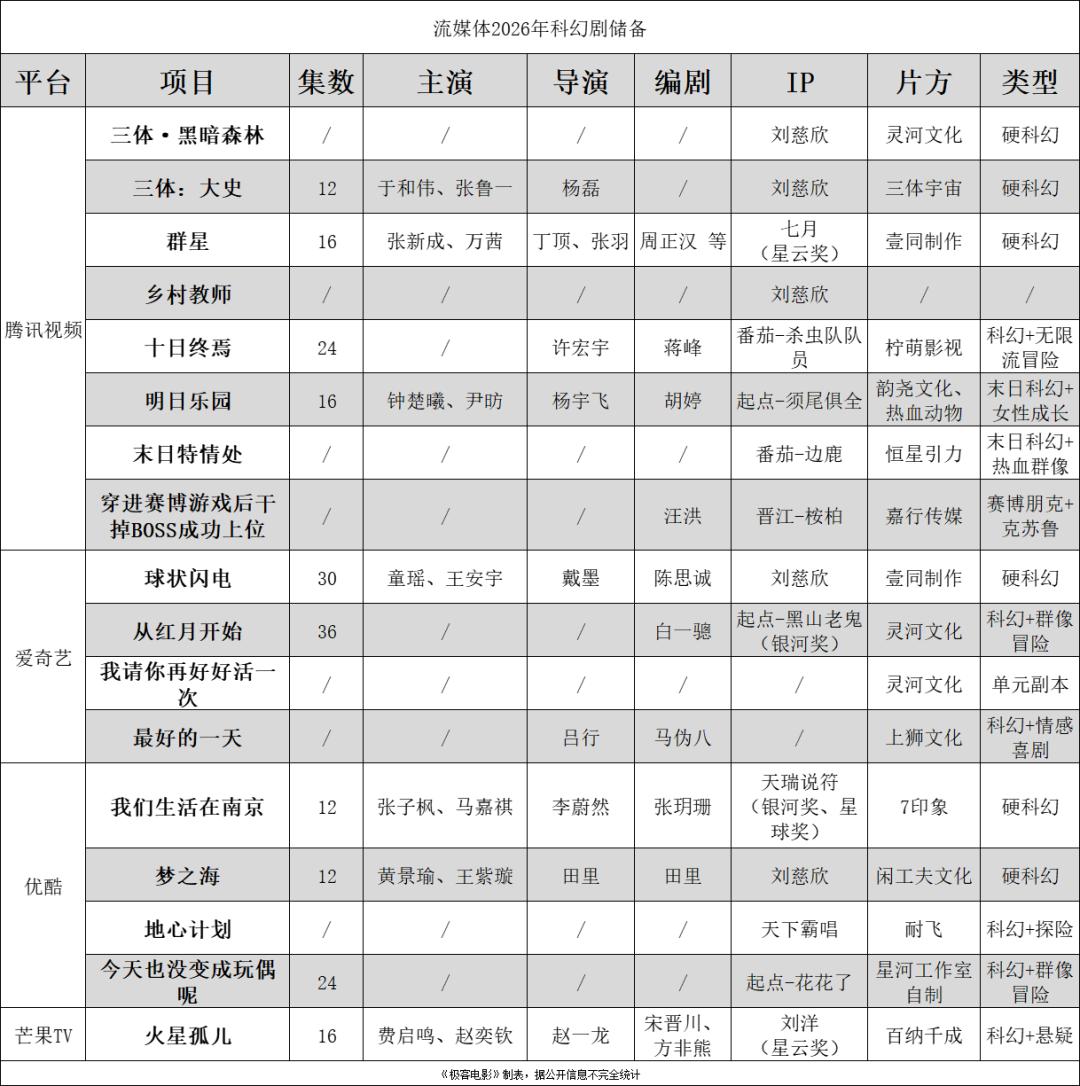 流媒体2026年科幻剧储备-17部储备科幻剧主创信息