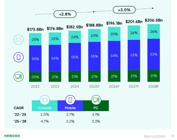 Newzoo数据显示:全球游戏市场规模已突破1800亿美元,预计增速仍将提升