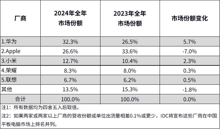 根据 IDC 的数据,2024年中国平板电脑市场出货量同比增长 4.3%,华为登顶年度第一。与此同时,iPad 的全年市场份额下跌 7%。这种「此消彼长」的趋势,让苹果不得不重新审视 iPad 的竞争壁垒。