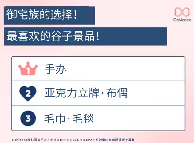 专营推活应援媒体的Oshicoco公司,今年7月进行“自推相关抽赏景品(一番赏类娱乐产品)”问卷调查,结果显示有84%的人曾购买过自推相关的抽赏,其中最受大家喜爱的抽奖类景品TOP3分别是手办、亚克力立牌·布偶以及毛巾·毛毯。