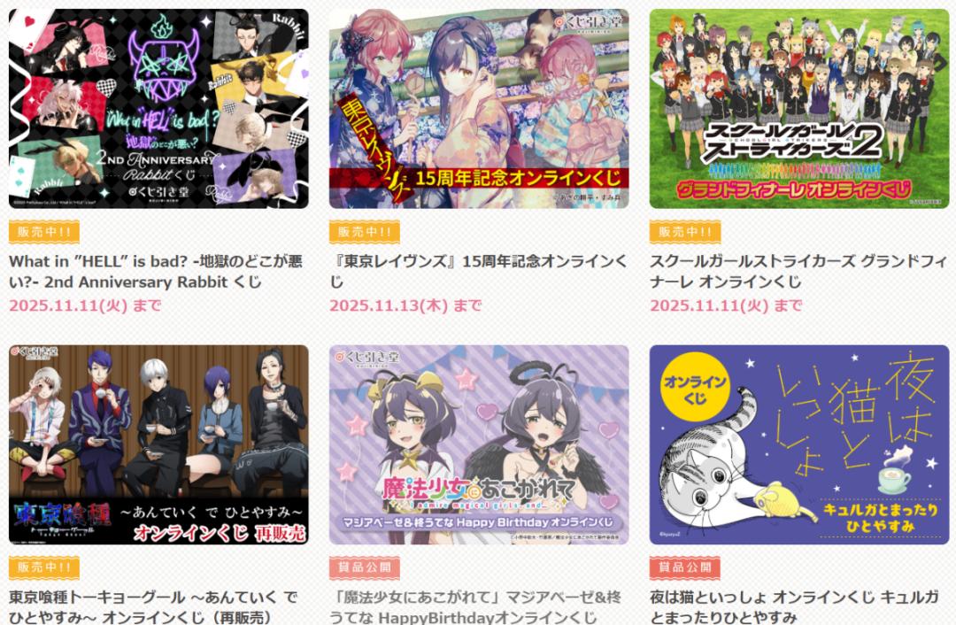 角川抽赏堂(くじ引き堂):赏品多为热门类谷子