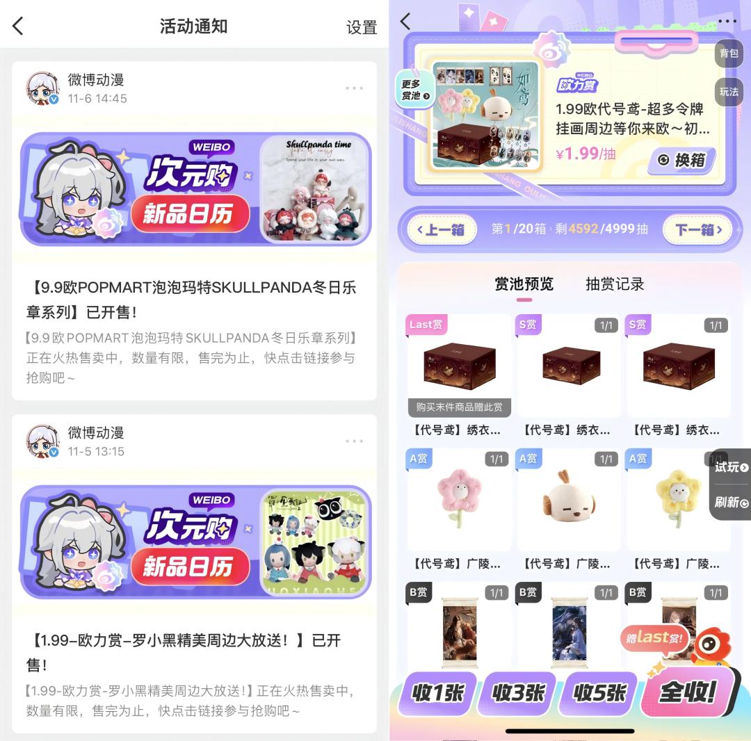 曾有B站“魔力赏”等品牌在营收爆量的同时爆发舆论争议。如今市场更加完善,产品不断增加,比如微博推出“欧力赏”,泡泡玛特推出“福赏”,甚至以玄机科技为代表的IP版权方也通过抽赏提高收入。