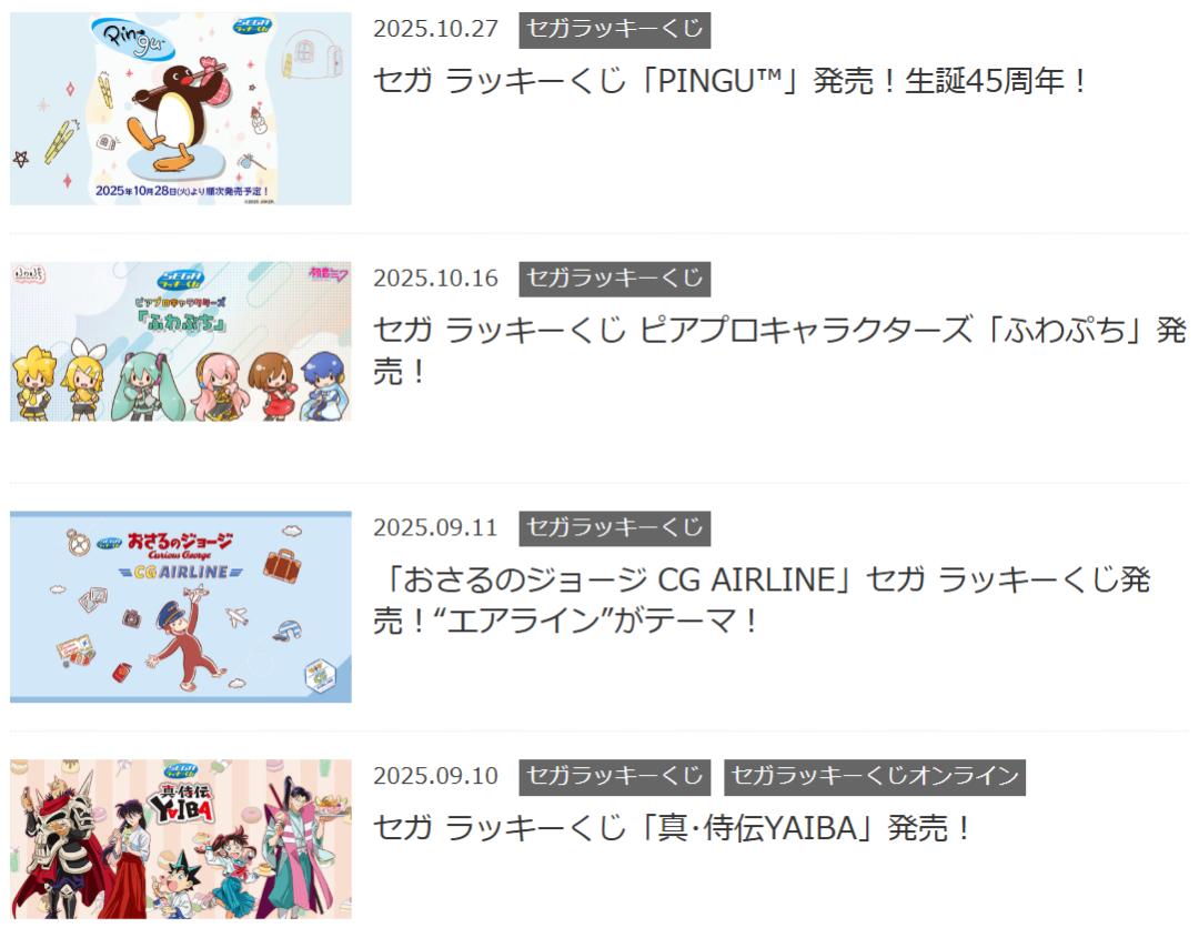 世嘉幸运赏(セガラッキーくじ):瞄准粉丝主打二次元内容