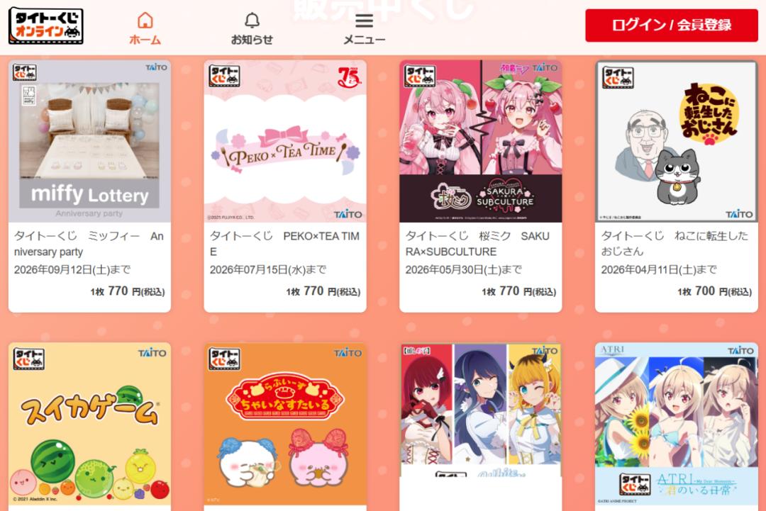 在万物皆可Gacha的日本,其他厂商当然不会放过这种赚钱门路,各种“赏(くじ)”遍地开花,比如三丽鸥抽赏、角川抽赏堂、DMM抽赏、世嘉幸运赏、Taito太东赏、寿屋赏、Furyu赏……(后面文创潮将展开介绍)