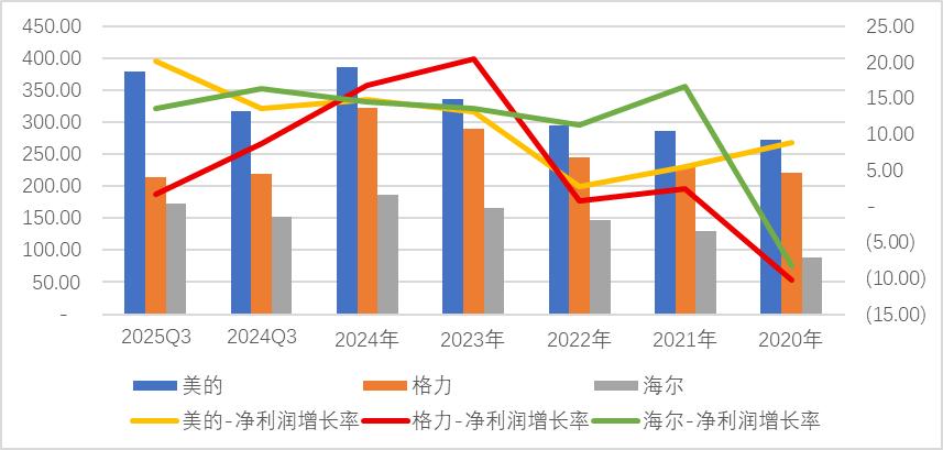 然而,当我们把目光转向家电三巨头——格力、美的、海尔,复盘其2025年三季报,并拉长周期看近五年表现时,会发现它们早已“越过山丘”,进入了新的竞争阶段。
