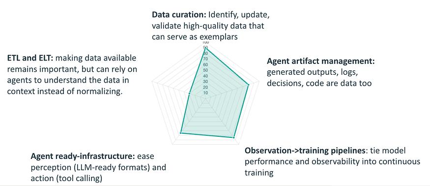 你向代理展示的示例数据会影响它对所有类似数据的理解。你可能会创建一个示例库,并选择哪些示例用于特定类型的用户查询。随着数据管理的重要性日益凸显,作为数据工程师,构建以下工具变得至关重要: