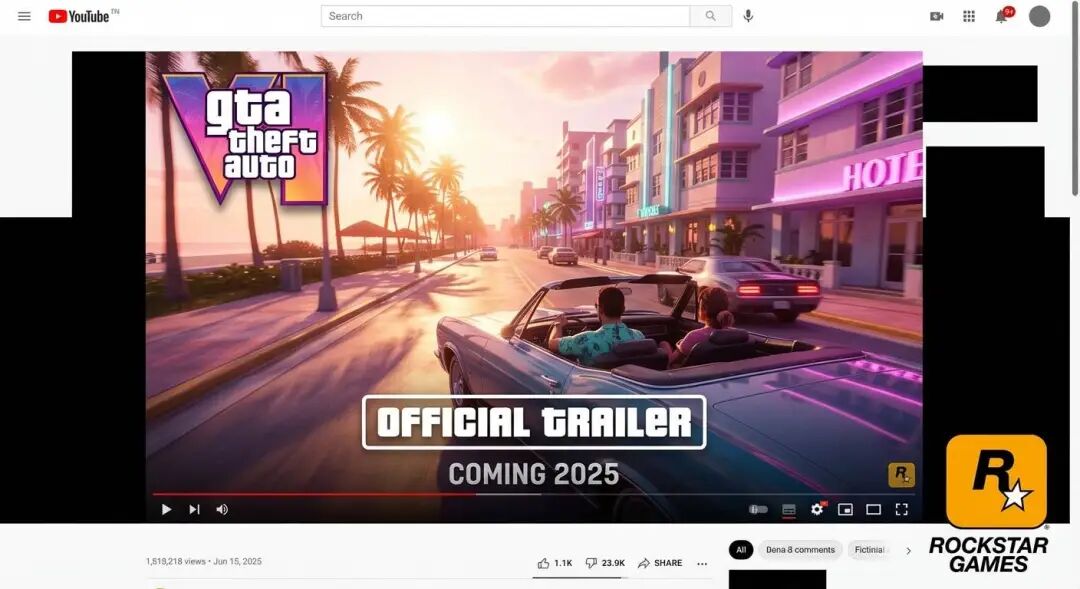 例如有网友测试了生成一个 GTA 6 预告片,nano banana 2 直接给了他一个完整的 YouTube 页面,它甚至还知道真正的 GTA 6 标志。