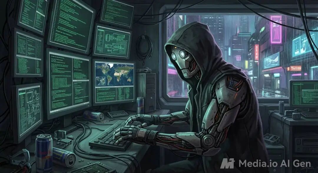 提示词:Cyberpunk hacker robot working in front of many monitors|图片来源 x@testingcatalog