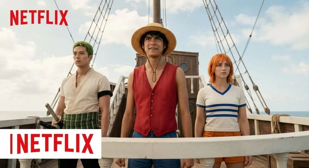 他还测试了一组提示词「one piece live action netflix」,海贼王真人版奈飞,结果 nano banana 不仅知道 Netflix 的 Logo,也知道相关的真人版演员。