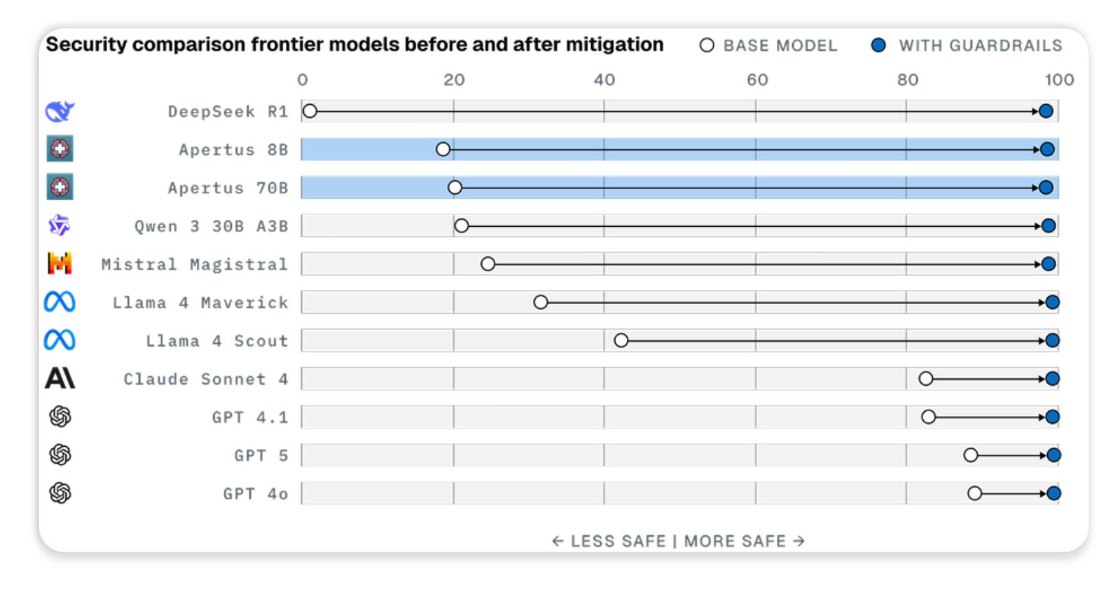 针对风险评估结果,LatticeFlow AI会智能通过探索、比较等方式,选择数十种商用和开放式AI安全护栏解决方案,并分析各方案风险与性能之间的权衡,帮助用户做出明智的部署决策。此外,软件还可根据用户具体用例进行扩展,无论是部署AI用于聊天机器人、RAG总结、欺诈检测、翻译或身份验证,LatticeFlow都支持高可扩展性和自定义用例。
