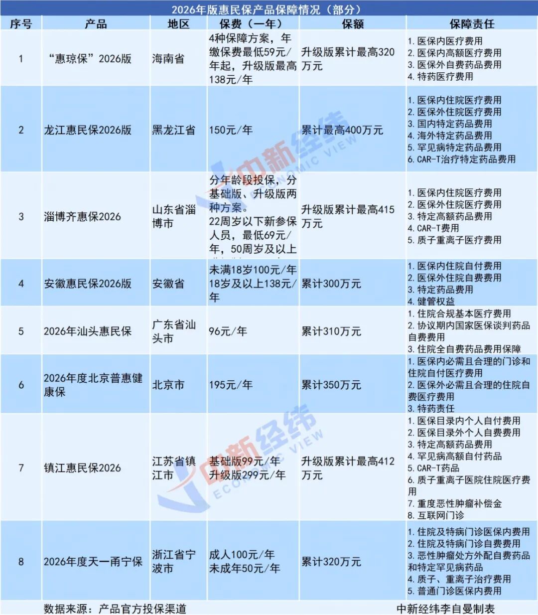 公开信息显示,自9月份以来已有“惠琼保”2026版(海南省)、“龙江惠民保2026版”(黑龙江省)、燕赵健康保(原冀惠保,河北省)等多款产品上线,并均在此前版本上进行升级。