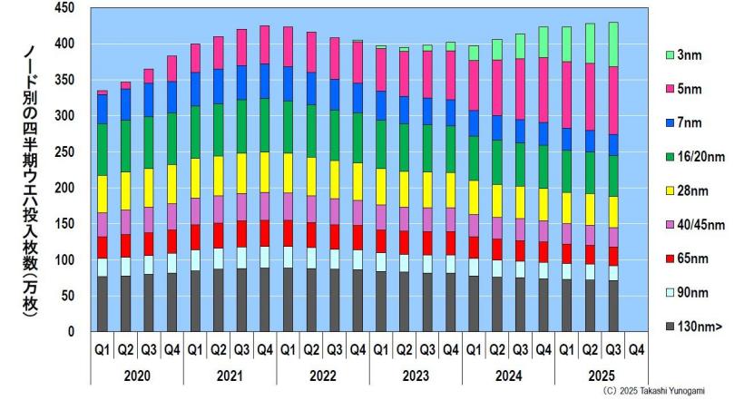 (1)自2020年第一季度以来,只有最先进的5nm和3nm制程节点的晶圆投入量持续增长。