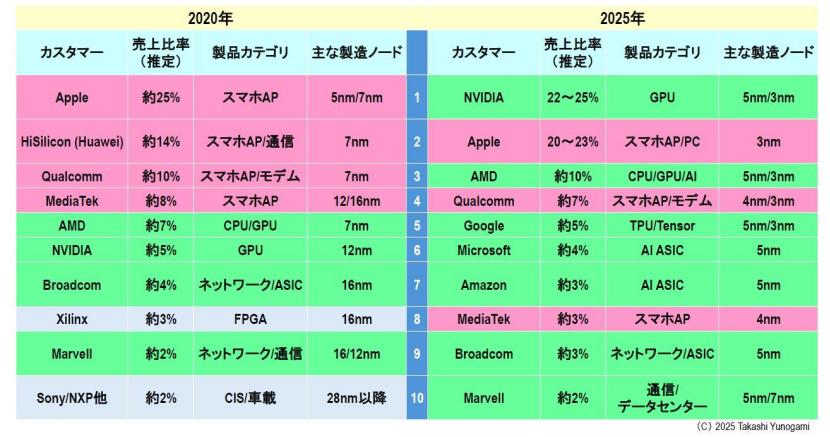 图 10:台积电十大客户(2020 年与 2025 年对比)
