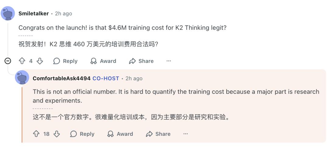 Kimi:这不是一个官方数字。很难量化培训成本,因为还有很大一部分工作是研究和实验。