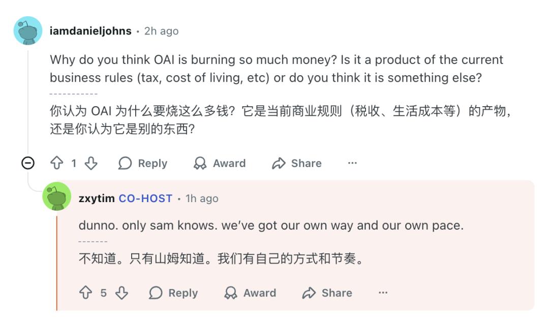 Q:如何看待与OpenAI等巨头的竞争?为什么OpenAI这么烧钱?
