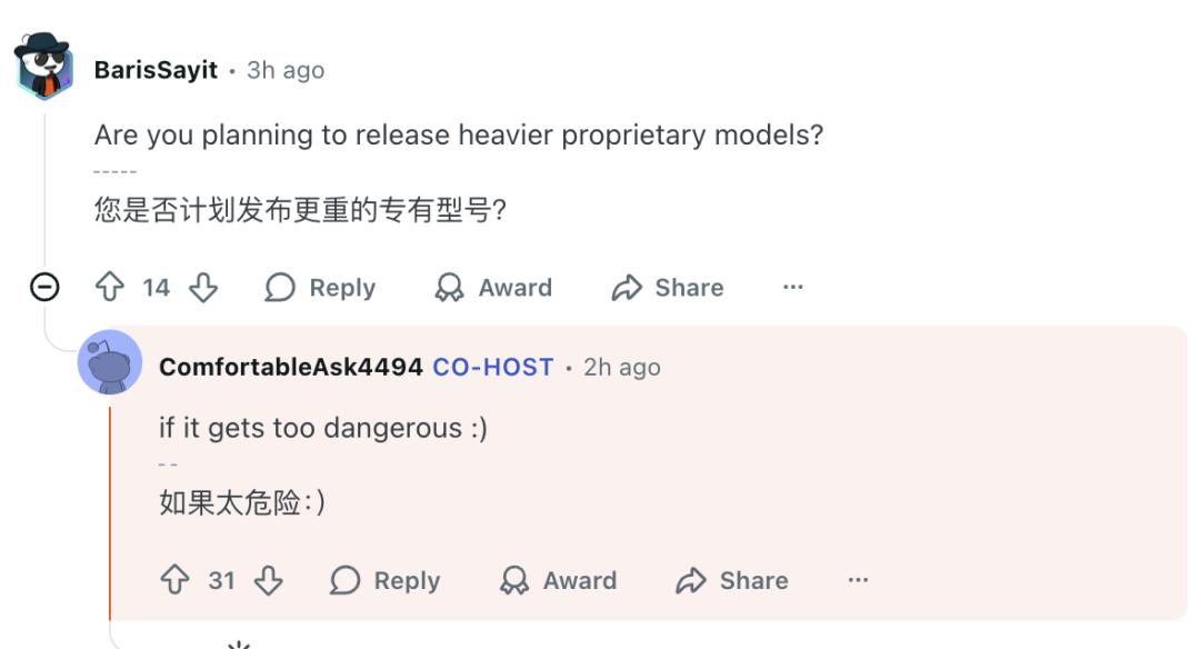 △以后会发布更大规模的闭源模型吗?一个含蓄的回答:如果模型变得越来越危险的话:)