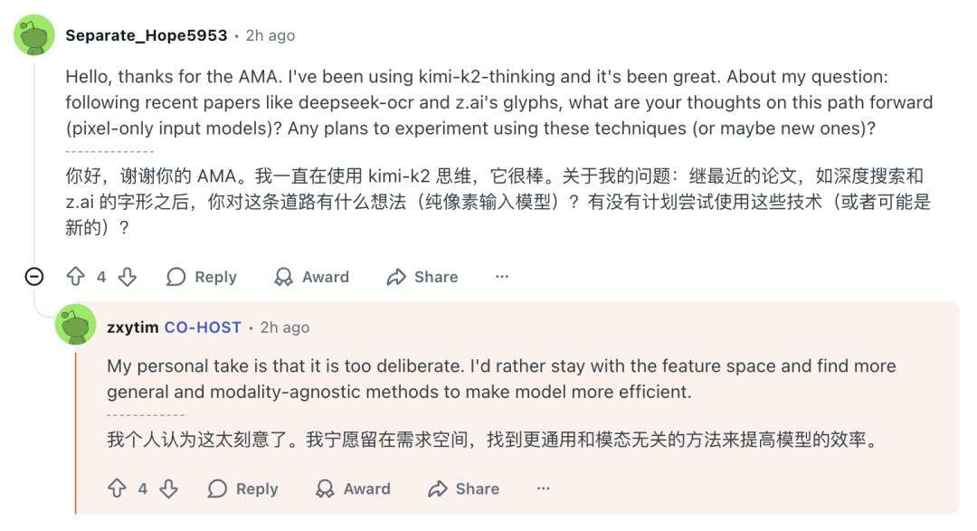团队主创选择在Reddit、知乎上回答问题,也和Kimi现在的开源路线一脉相承——这些社区都是AI从业者、极客聚集的地方。