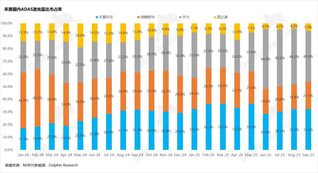 禾赛在国内市场已经获得了前两大ADAS客户(预计小米和理想)2026年全系车型的定点合作,实现激光雷达100%的标配,而市场更关注比亚迪/吉利等车企的订单进展,具体可能需要看业绩会中管理层的披露。