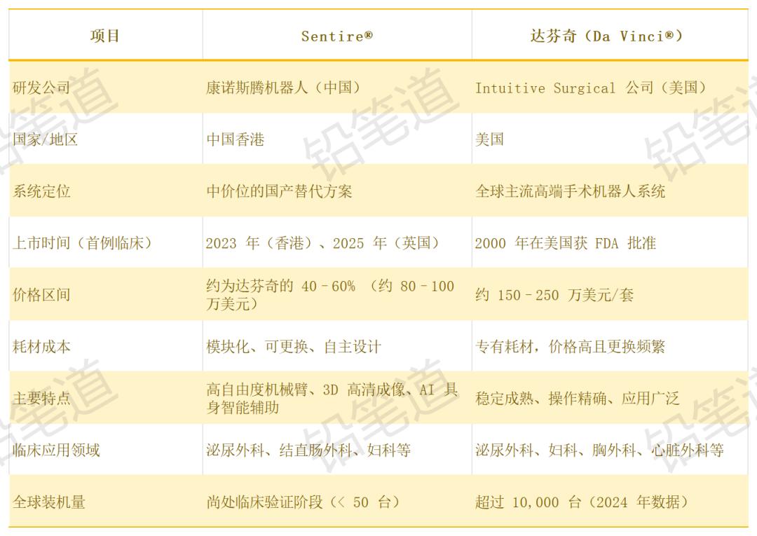 据《南华早报》报道,Sentire® 定位为“中价位国产替代”,整机价格预计为达芬奇的 40–60%。