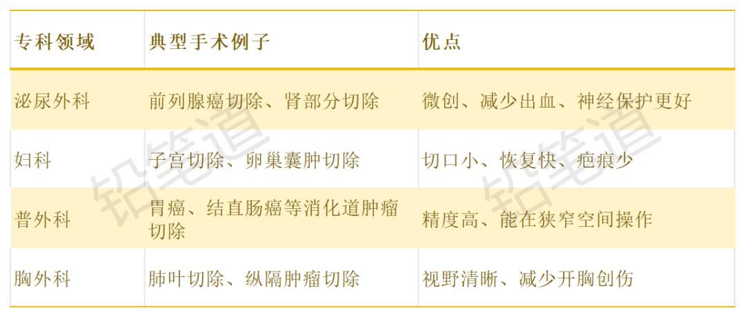 它可以用来做什么呢?各种微创手术(如下表)。