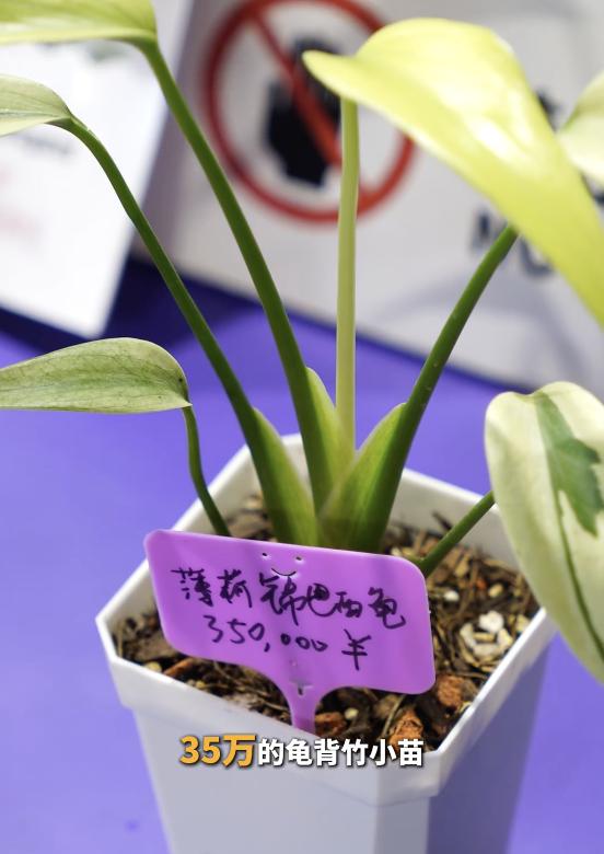 再比如,跟老G手指头差不多大的龟背竹小苗,标价35万。