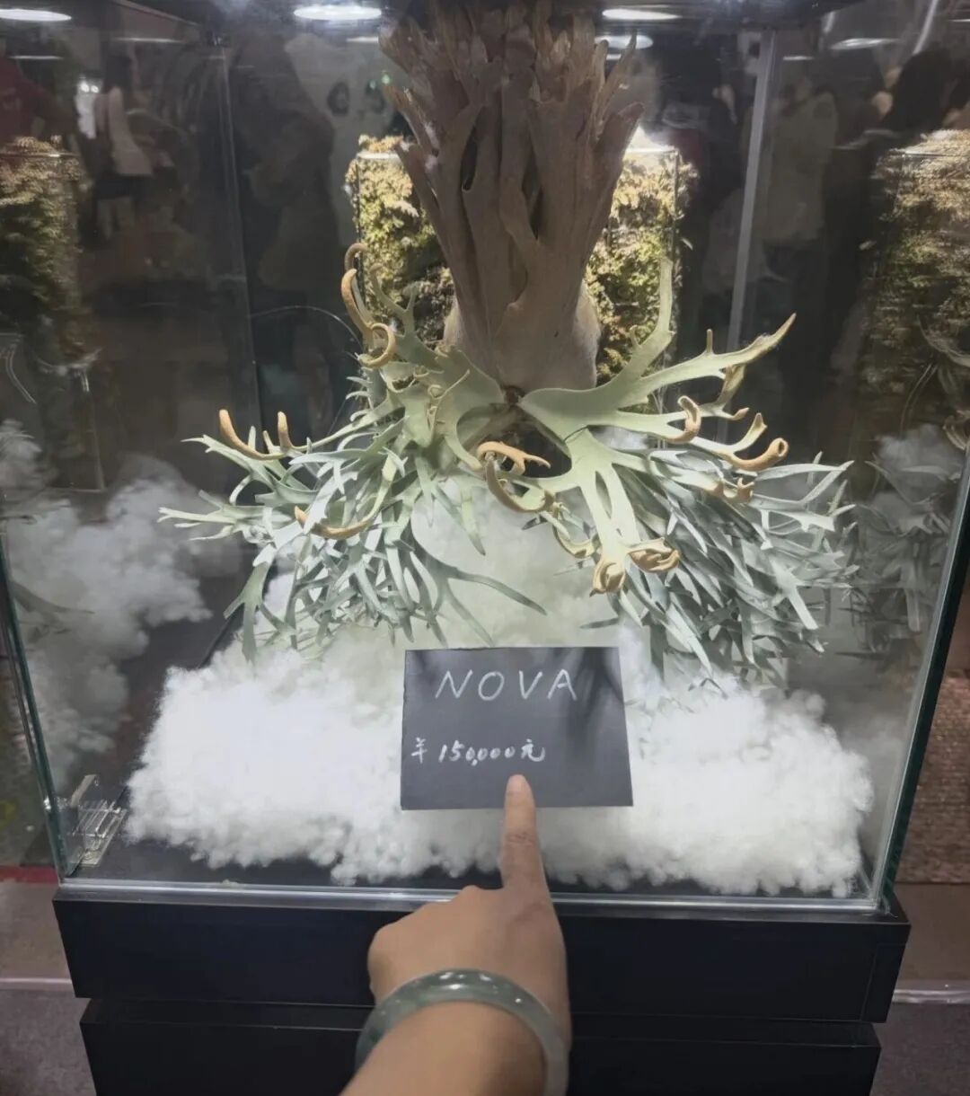 下面这株披着白色绒毛的鹿角蕨,标价整整100万。
