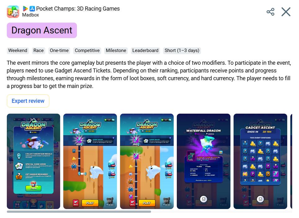 自2021年上线至今,这款多人放置竞速游戏表现依旧稳定,比起上季度收入增加26%。其第三季度的「Dragon Ascent」活动带动单日收入达13.1万美元,环比提升26%。