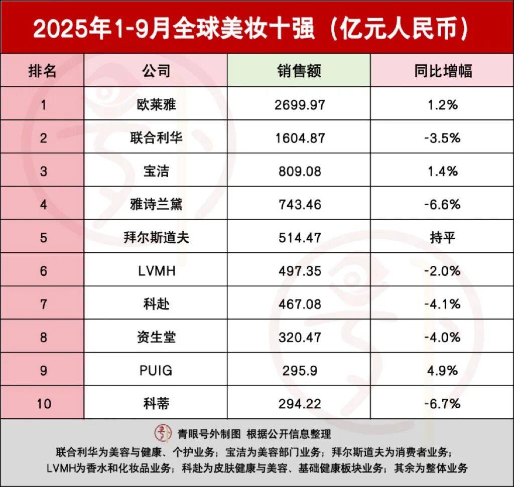 最新,全球美妆十强排名又变了