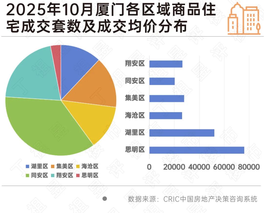 同样连续两个月保持20%以上增长的厦门同样出现明显分化的态势,区域发展阶段和市场定位差异显著,供需结构呈现"中心高价低量,边郊低价高量"的特征,10月同安区成交套数占比最高达36%,成交价格却是各区最低。同安区内中海环东雲起表现亮眼,抓住营销节点,以性价比加持成为市场的主要增长点。
