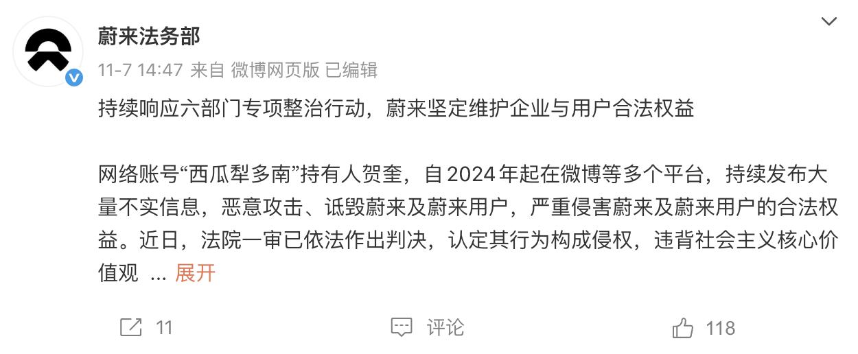 这些账号不再局限于发布法律声明,而是定期公示处理结果:蔚来累计封禁恶意账号超2000个,起诉13起案件均胜诉;比亚迪通过司法途径追究27名自媒体博主责任,涉案金额累计超千万元。