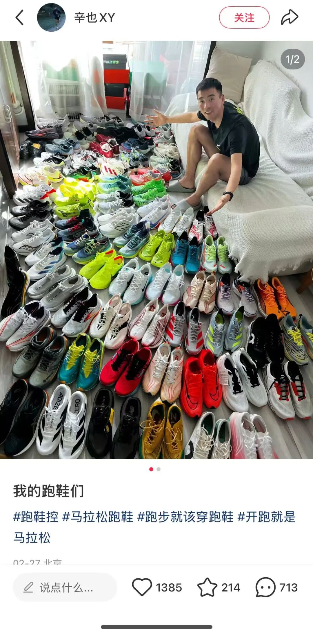 一位跑了十年的朋友Arthur告诉我,他的鞋柜这几年发生了翻天覆地的变化:曾经清一色的阿迪、耐克,已被按功能细分的新装备取代——缓震跑鞋、竞速碳板鞋、越野鞋......分得清清楚楚。