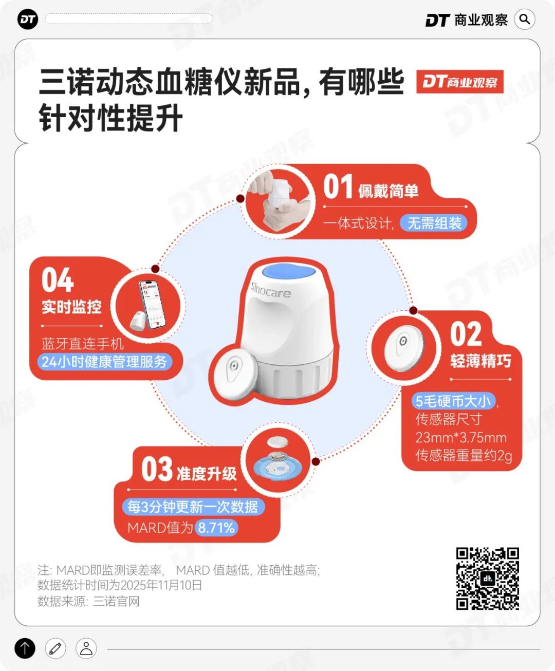 在这场硬件竞赛中,三诺爱看动态血糖仪展现了全面的产品力: