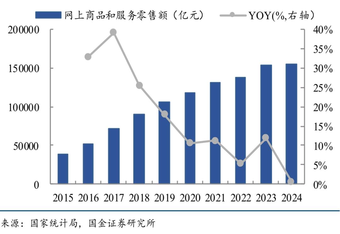 图2:线上商品和服务零售额占社会总零售额比例不断提升(数据来源:国家统计局,国金证券研究所)