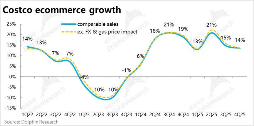 图4:Costco的线上站点流量同比增加了27%,电商销售额同比增长了13.6%(数据来源:Costco2025第四季度财报,海豚投研)