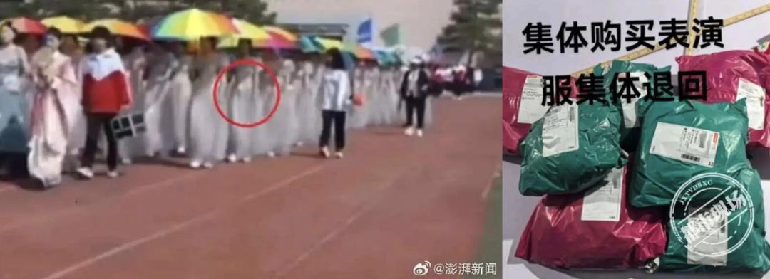 活动演出也是次抛衣重灾区。今年的5月2日,山东菏泽的一位女店主说,沈阳一职业技术学校60多个学生在四月底集体网购衣服,参加完运动会后集体以“质量问题”为名退货退款。商家收到的衣服不仅沾满草屑泥土,还布满褶皱。店主说,“这个服装的链接被封了三个月,三个月卖不了,损失八千块左右。”