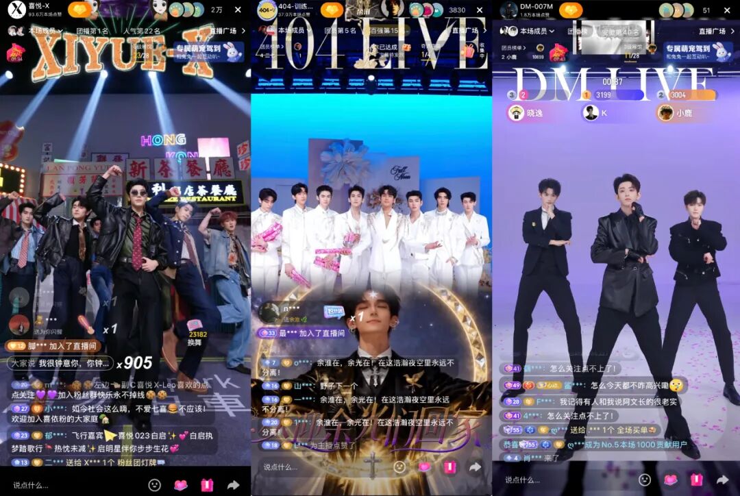 灯火通明的房间内,妆容精致的男孩们面对镜头专注地舞蹈,整齐划一地配合运镜师快速做出新的动作,数控灯具时而用面光清晰打亮主播精致的面部轮廓和服饰纹理,时而又以逆光勾勒出潇洒的身形,屏幕上点赞和留言飞速滚动,观众们不遗余力为喜欢的主播打call,将这场视听盛宴推向高潮。