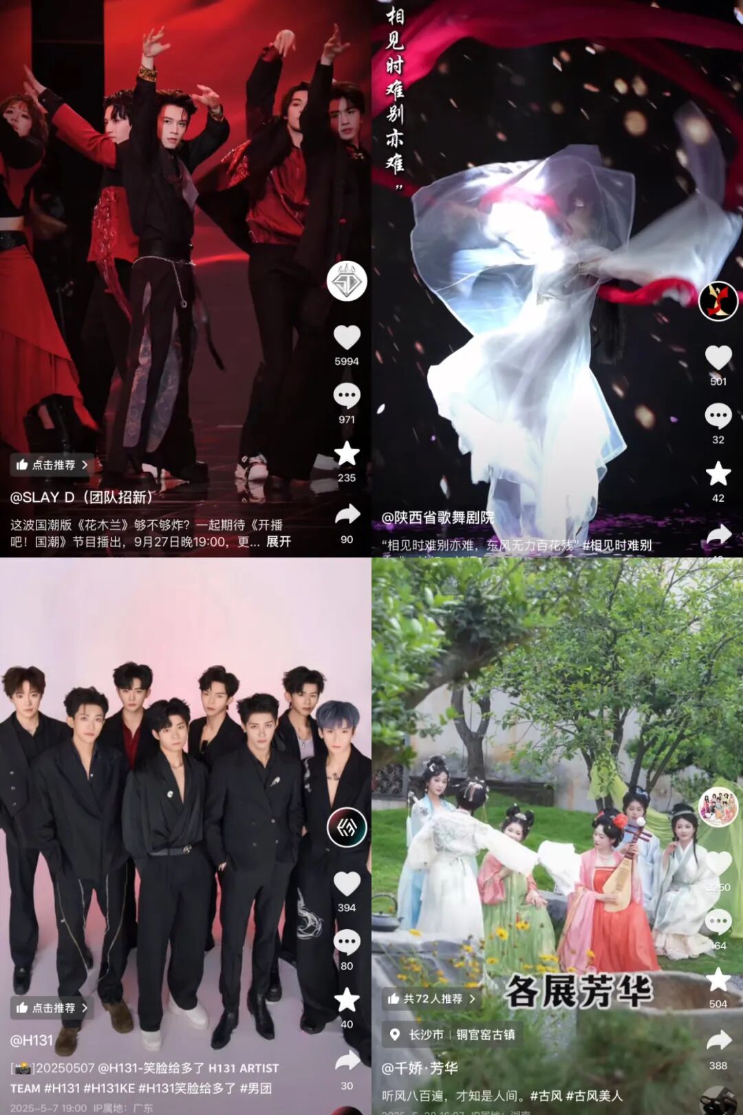 随着内容和呈现方式的快速迭代,现在的团播不再是“多人直播”的简称,而是逐步向专业化、精品化升级。在抖音,团播的多元化赛道形成,已衍生出国风舞蹈、HIP-HOP、二次元、剧情演绎、乐器演奏、游戏主题等多个专业赛道,满足不同圈层用户的审美需求。