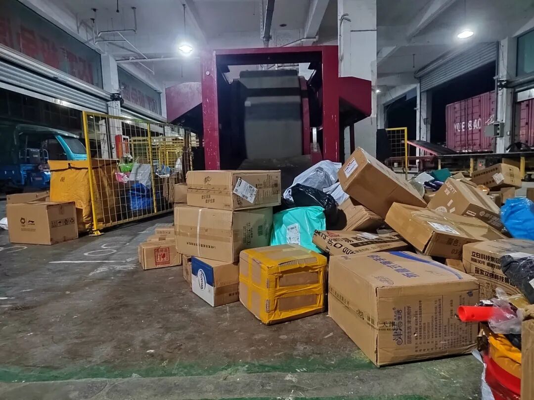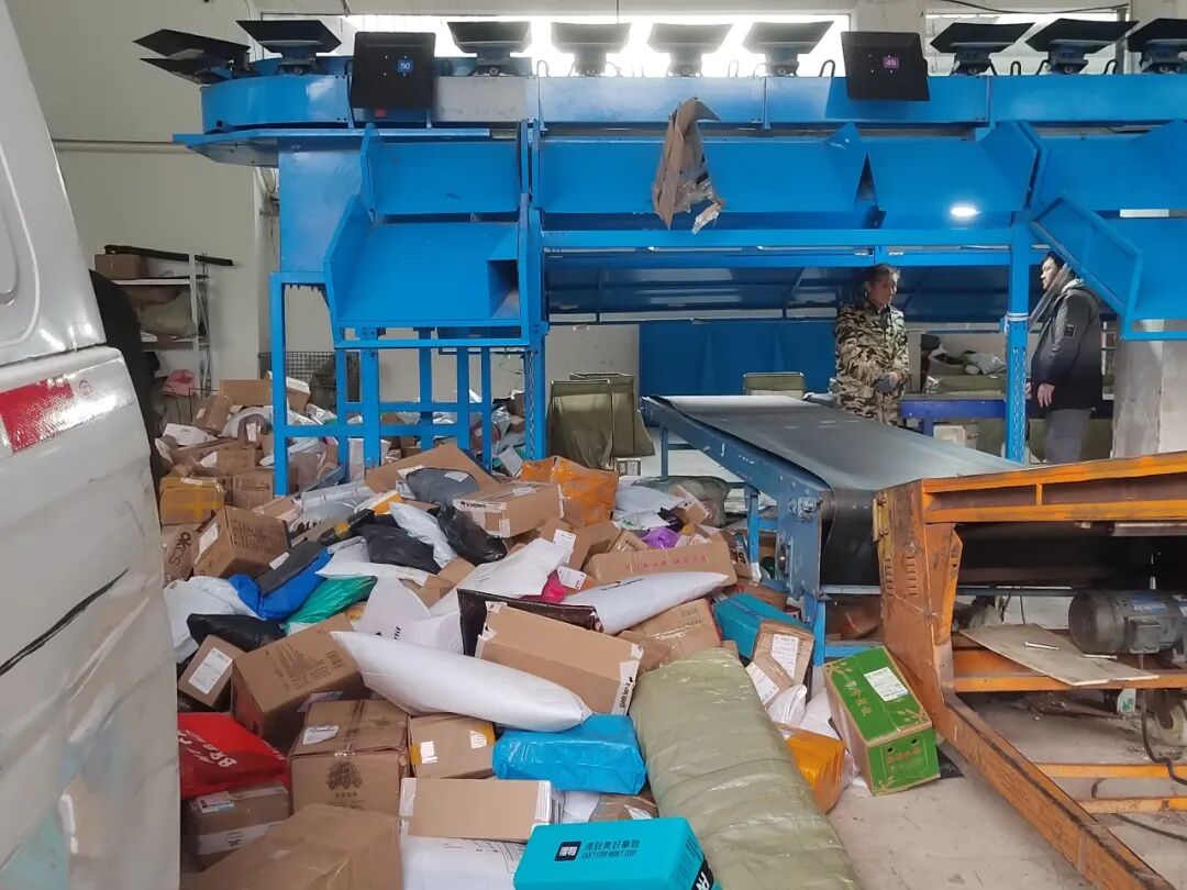 临近双十一大促尾声,偌大的工作间内已是另一番景象,和寂静的街道形成鲜明对比。这里不仅人声鼎沸,快递传送机器也在持续发出低沉的轰鸣声。