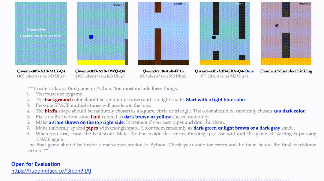 传统认知认为:量化=精度损失。但GreenBitAI证明:量化不是简单的“压缩”,而是模型解码偏好的“重新对齐”——识别出真正关键的权重并加以保护,对非关键部分进行激进压缩,确保模型在预训练阶段学会的核心推理轨迹不被破坏。