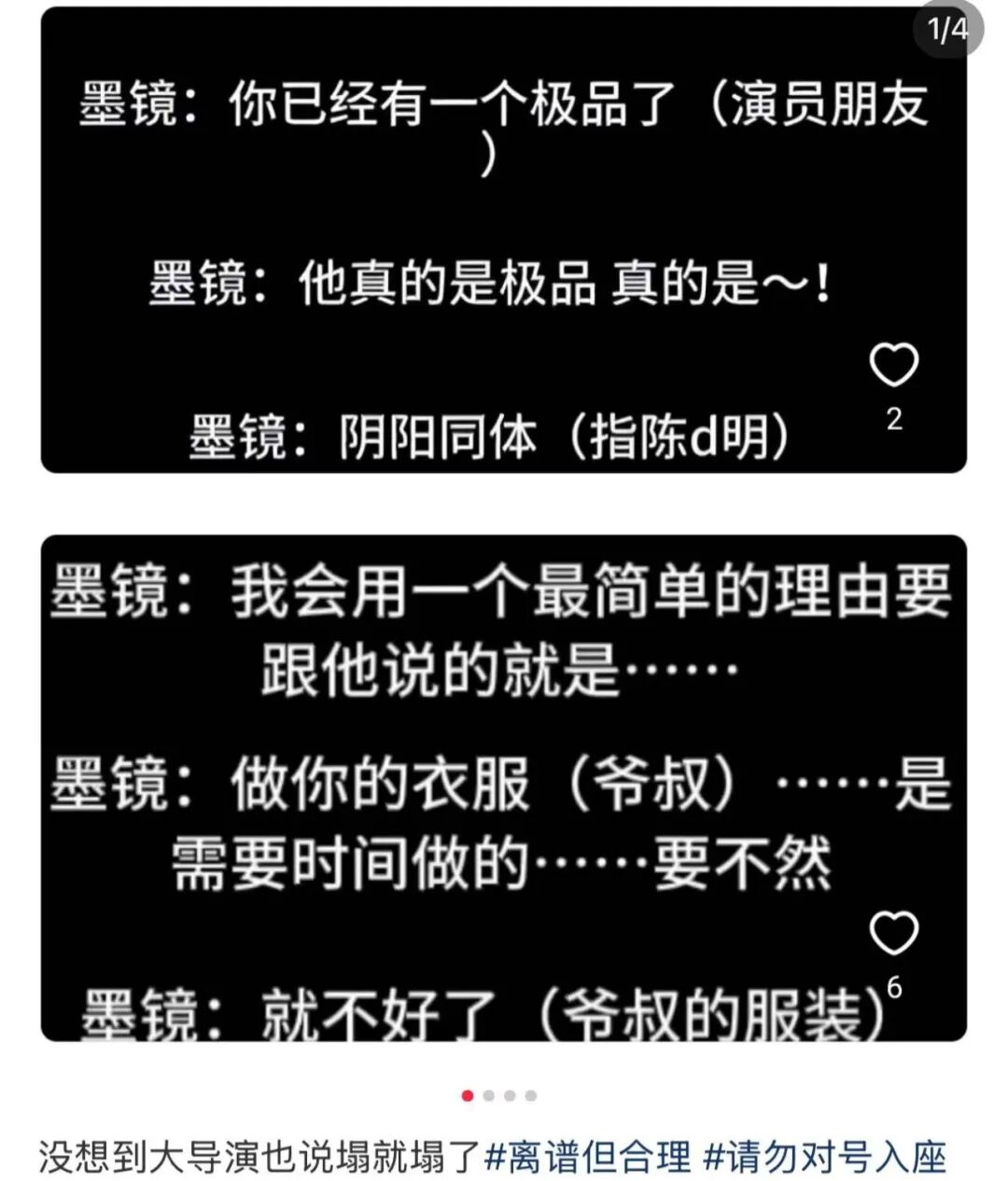 更典型的,还有王家卫的录音事件。曾经被奉为“东方美学巅峰”的导演,在曝光的录音中,随时展露着对演职人员的控制与傲慢,那种昔日神秘的“艺术家气场”瞬间化为上位者的冷漠。