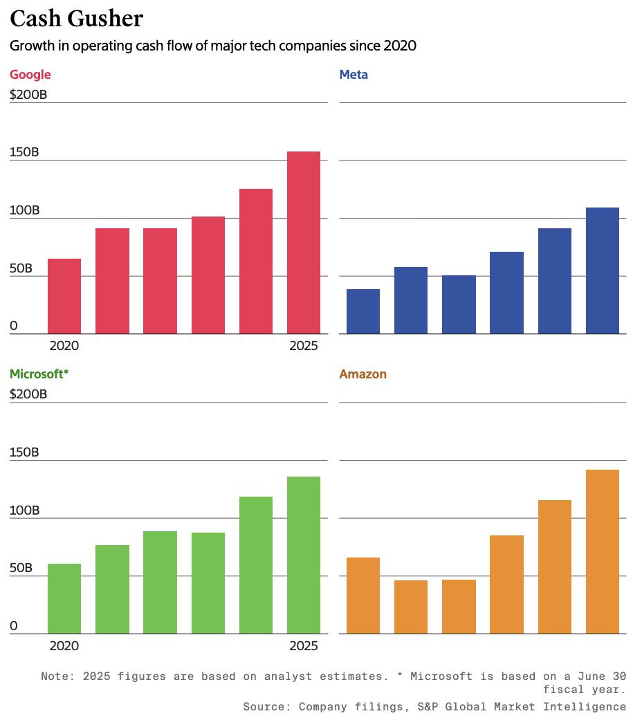 Amazon、Meta、谷歌、微软预计的现金流|图片来源:The Information