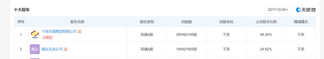 天眼查显示,合盛硅业首次公开发行股票时,富达实业一度持有公司近1.65亿股股份,占公司当时总股本的24.62%,是合盛硅业的第二大股东。