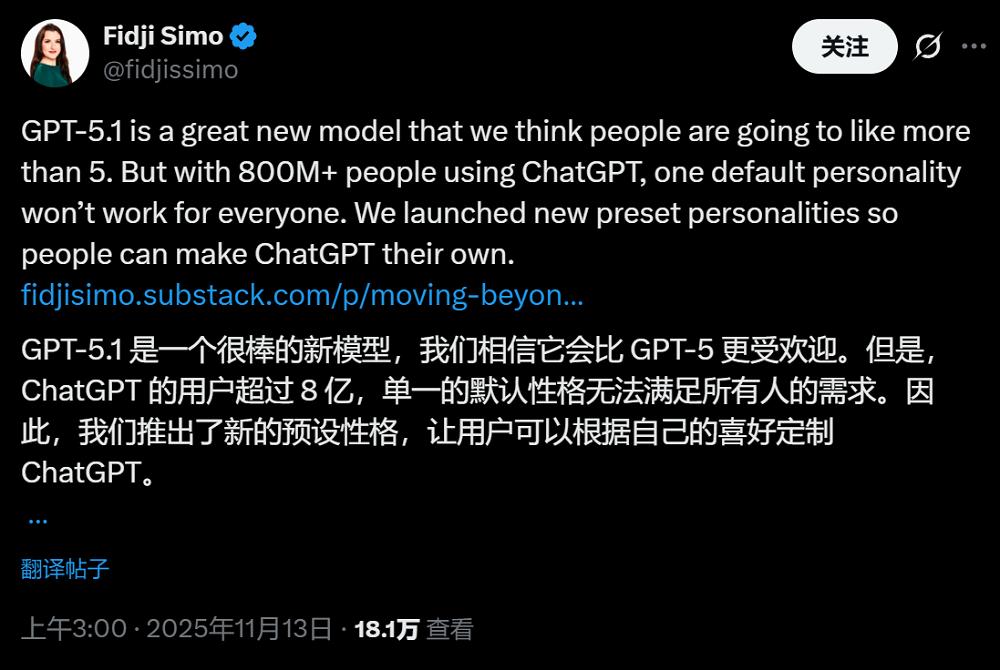 用户破8亿,GPT-5.1来了,表情包含量可自定义